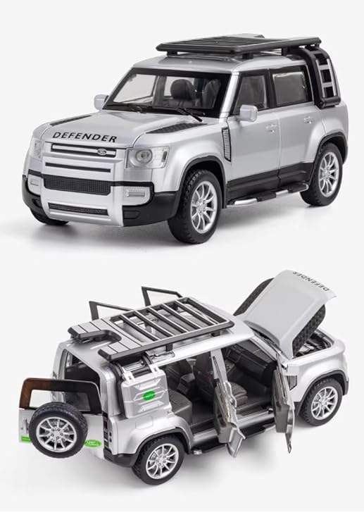 High-Speed Off-Road Defender Rover Rc Car with Light Racing Car Toy Vehicle Remote Control Car for Kids (Rechargeable) (Silver) (Material- Metal)
