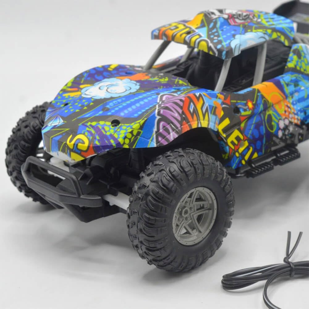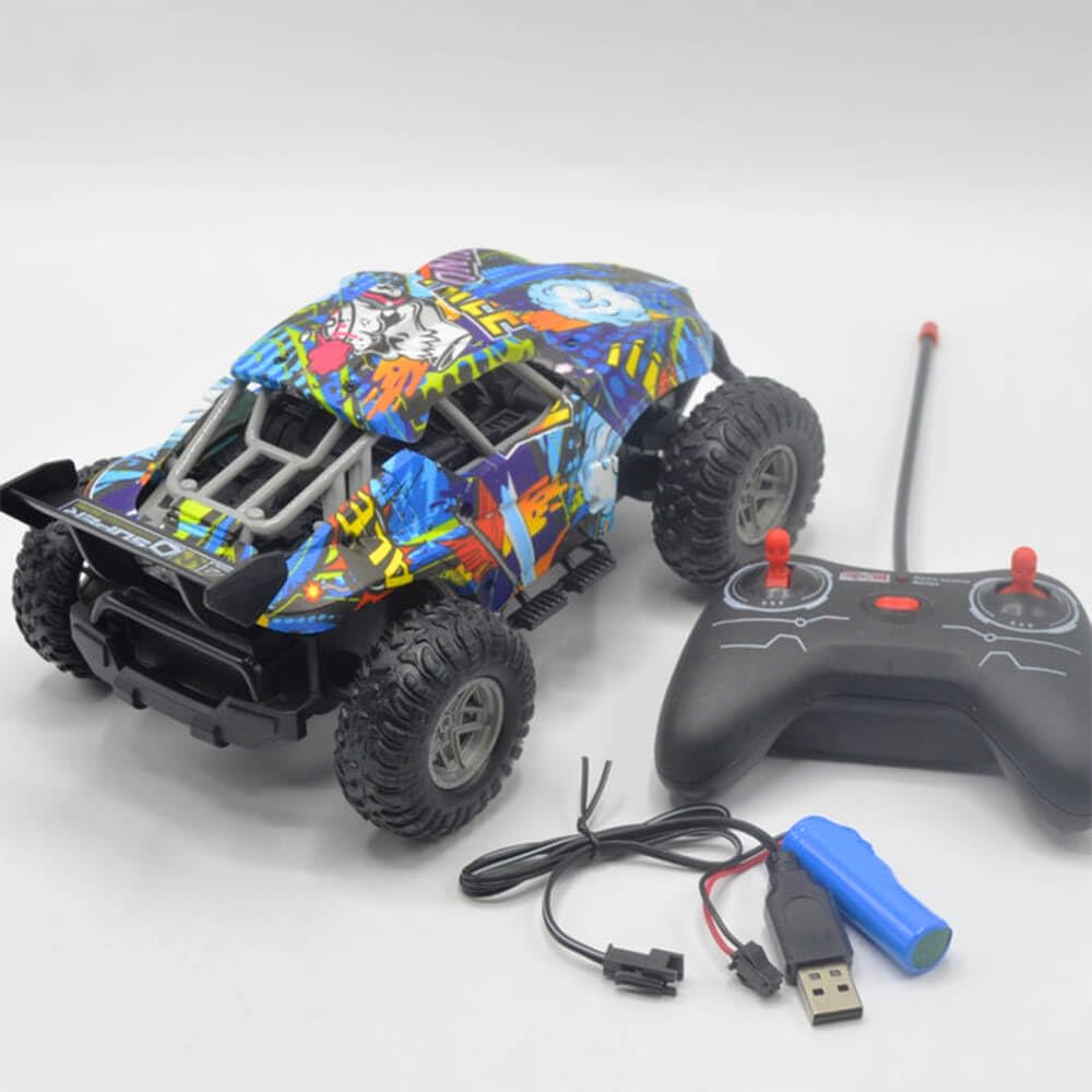 - DESIGN SCALE: Premium 1:16 scale RC off-road car with full function remote control and front wheel steering trim for precise manoeuvring.