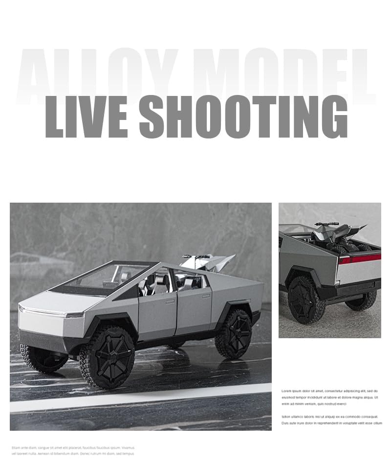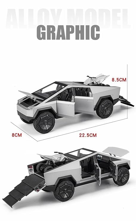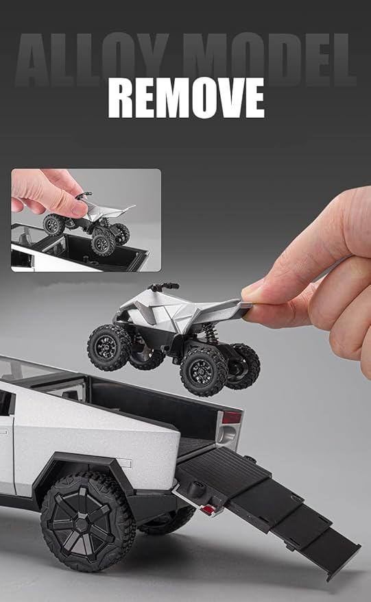 Tesla Cybertruck Model Toy with ATV, Die-Cast Scale Model, Silver